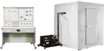 實訓(xùn)裝置主要由控制屏、實訓(xùn)桌、風(fēng)冷制冷機(jī)組及拼裝式冷庫等組成