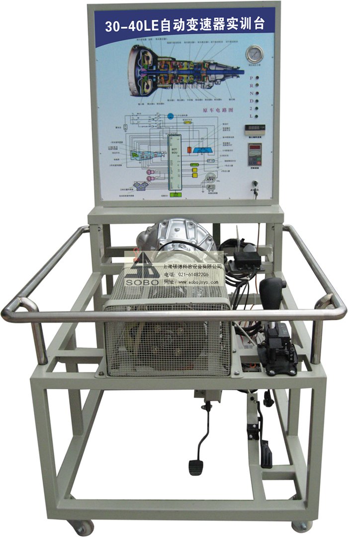 本變速器實(shí)訓(xùn)臺(tái)是本公司采用豐田后驅(qū)A340E自動(dòng)變速器為適應(yīng)汽車(chē)教學(xué)需求而研制的,該實(shí)訓(xùn)臺(tái)由電控變速器(八成新)、操作顯示面板及發(fā)動(dòng)機(jī)彩色電氣原理圖電腦控制柜、可移動(dòng)式臺(tái)架(萬(wàn)向腳輪)、驅(qū)動(dòng)系統(tǒng)(腳踏式油門(mén)踏板)變頻電機(jī)驅(qū)動(dòng)、啟動(dòng)系統(tǒng)(電門(mén)鎖方式啟動(dòng))、車(chē)速傳感器、電磁閥執(zhí)行器、原車(chē)電腦、具有發(fā)動(dòng)機(jī)運(yùn)轉(zhuǎn)及顯示(轉(zhuǎn)速.車(chē)速.檔位)、液壓油壓力顯示表(顯示換檔過(guò)程油壓)、自動(dòng)變速器電磁閥工作指示LED燈、故障設(shè)置區(qū)可設(shè)置12路故障(老師設(shè)置任一路線路故障)、故障排除區(qū)(學(xué)生通過(guò)各種儀器、儀表、)在面板上用專用排故線連接排除故障、傳感器信號(hào)模擬等多項(xiàng)功能、具結(jié)構(gòu)緊湊、操作方便、安全可靠、教學(xué)直觀、是汽車(chē)自動(dòng)變速器實(shí)物教學(xué)不可缺少的實(shí)驗(yàn)室設(shè)備之一。