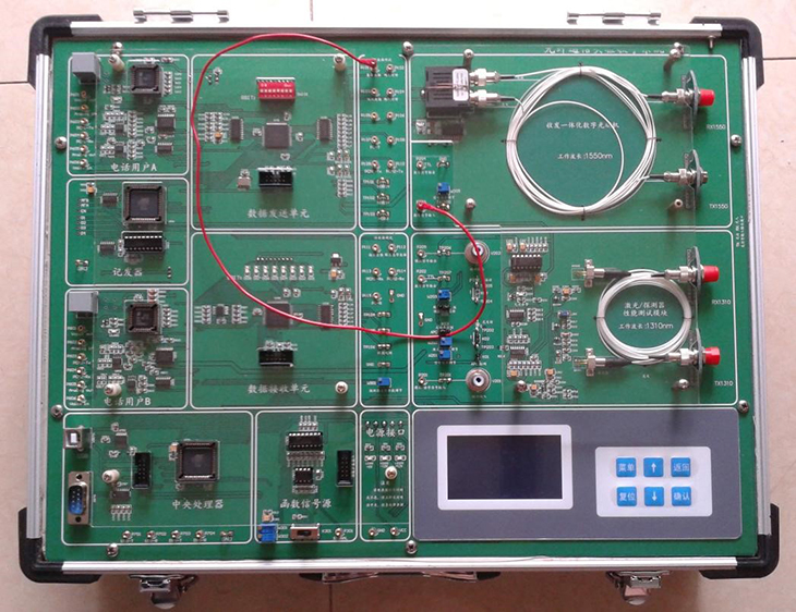 光纖通信實驗箱,光纖通信實驗臺,光纖通信實驗,光纖通信綜合實驗箱,有很強的信道編碼實驗:CMI、5B1C、5B6B、加擾解擾等線路編碼功能;增強了復(fù)接解復(fù)接功能、信令功能、系統(tǒng)性實驗功能,在信令的支持下能完成平臺間的電話呼叫接續(xù)系統(tǒng)實驗;增加了液晶鍵盤控制,取代原有的接插件;光輸入、輸出接口均設(shè)計朝外,方便連接其它光器件;留有硬件擴展接口,可選配LED或LD性能測試模塊,具有無光告警、自動功率控制APC等功能。 光纖通信實驗平臺布局美觀、結(jié)構(gòu)緊湊、并附有機玻璃保護。適合各大院校光通信專業(yè)的?粕、本科生、研究生以及教師和相關(guān)的科研技術(shù)人員使用。