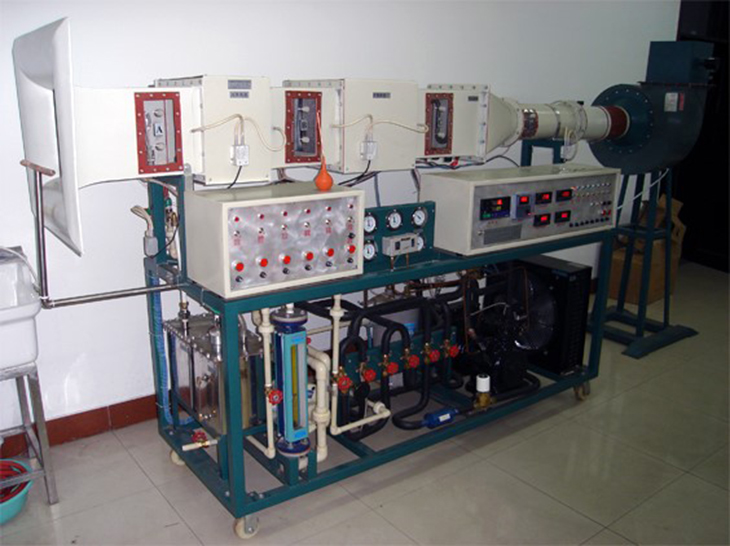 本裝置集直流空調(diào),制冷壓縮機(jī)性能,制冷熱泵,表冷器性能,加熱器性能于一體,可進(jìn)行空氣的加熱,加濕,冷卻,干燥,蒸發(fā)器,冷凝器進(jìn)行換相,可測(cè)出各點(diǎn)溫度、濕度、壓力、風(fēng)量、水流量及功率,計(jì)算出制冷量、功率、制冷系數(shù)、效率、并進(jìn)行熱平衡計(jì)算。
