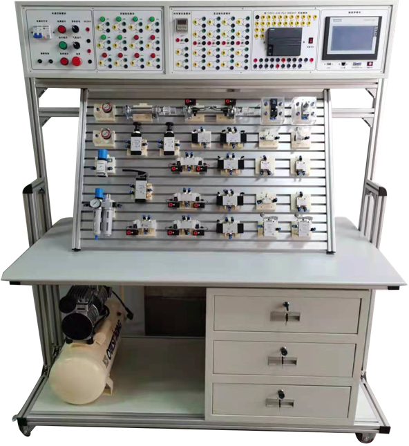 氣動液壓綜合實驗臺面向機電一體化、機械制造及自動化、機電一體化、電氣自動化等自動化類專業(yè)學(xué)生的《液壓與氣動技術(shù)》課程的教學(xué)與實訓(xùn)、同時提供面向企業(yè)的氣動技術(shù)項目培訓(xùn)。該裝置集理論實踐于一體,在產(chǎn)品結(jié)構(gòu)上由空壓機、實訓(xùn)臺、氣動元件、電氣元件組成,涵蓋氣動基本的執(zhí)行元件、氣閥元件及基本的氣動搭接回路實訓(xùn)的內(nèi)容,可使學(xué)生了解和掌握氣動元件的選型、應(yīng)用、設(shè)定、調(diào)節(jié),氣動基本回路的原理。幫助學(xué)生提高學(xué)習(xí)氣動基礎(chǔ)知識的興趣,方便教師課堂教學(xué),增加專業(yè)特色。實訓(xùn)室主要實訓(xùn)項目:氣動基本回路實驗實訓(xùn)、繼電器控制的氣動系統(tǒng)實驗實訓(xùn)、可編程序控制器(PLC)電氣控制實驗實訓(xùn)、機-電-氣一體化控制實驗實訓(xùn)、氣動系統(tǒng)創(chuàng)新設(shè)計組裝實訓(xùn)。 通過實驗實訓(xùn),讓學(xué)生更好地理解和掌握氣壓件結(jié)構(gòu)、形狀、作用和工作原理方面的知識,掌握常用的氣動回路作用、工作原理和使安裝調(diào)試方法,理論結(jié)合實際,提高動手能力,為將來從事與自動化專業(yè)相關(guān)的設(shè)計、制造、維修等工作打下良好的基礎(chǔ)。上海碩博弘揚大國工匠精神, 發(fā)展職業(yè)教育,應(yīng)用教學(xué)設(shè)備,為企業(yè)培養(yǎng)高技能人才,液壓實驗臺是以高?蒲谐晒a(chǎn)業(yè)化為背景,由教授、高級工程技術(shù)人員、高級管理人員為主體組成的,集研發(fā)、生產(chǎn)銷售于一體的企業(yè),專業(yè)提供液壓試驗臺,氣動實驗臺,液壓拆裝實訓(xùn)設(shè)備,氣動液壓綜合實驗臺。 液壓PLC控制實訓(xùn)裝置(工業(yè)型)、液壓元件拆裝實訓(xùn)裝置、透明液壓與氣動PLC控制綜合實訓(xùn)裝置、透明液壓與氣動PLC控制綜合實訓(xùn)裝置(組態(tài)軟件控制)、透明液壓PLC控制實訓(xùn)裝置(外帶泵站)、透明液壓PLC控制實訓(xùn)裝置(內(nèi)帶泵站)、透明液壓傳動PLC實訓(xùn)裝置(外帶泵站、組態(tài)軟件控制)、透明液壓傳動PLC實訓(xùn)裝置(內(nèi)帶泵站、組態(tài)軟件控制)、透明液壓PLC控制實訓(xùn)裝置(挖掘機實訓(xùn)臺)、透明液壓傳動演示系統(tǒng)、四合一透明液壓傳動演示系統(tǒng)、氣動PLC控制實訓(xùn)裝置、氣動PLC控制實訓(xùn)裝置(組態(tài)軟件控制)、液壓與氣動PLC控制綜合實訓(xùn)裝置(工業(yè)型)、液壓與氣動PLC控制綜合實訓(xùn)裝置(工業(yè)型組態(tài)軟件控制)、液壓PLC控制實訓(xùn)裝置(工業(yè)型)、液壓PLC控制實訓(xùn)裝置(工業(yè)型帶組態(tài)軟件控制)、液壓挖掘機PLC控制實訓(xùn)裝置(工業(yè)型)、液壓起重機PLC控制實訓(xùn)裝置(工業(yè)型)。