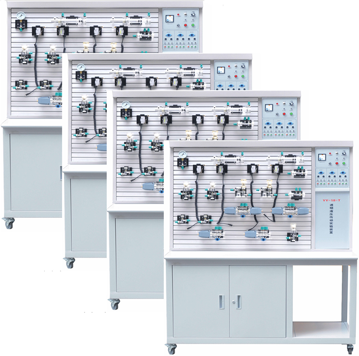 透明液壓實(shí)驗(yàn)臺(tái)為實(shí)現(xiàn)液壓傳動(dòng)課程現(xiàn)代化教學(xué)而進(jìn)行研究的最新科技成果,它填補(bǔ)了技校、中專、大專院校的液壓傳動(dòng)透明教學(xué)設(shè)備的國家空白。液壓傳動(dòng)具有重量輕、功率大、結(jié)構(gòu)簡單、布局靈活、控制方便等特點(diǎn)、速度、扭矩、功率均可作無級調(diào)節(jié),能迅速換向和變速,調(diào)速范圍寬,快速性好,工作平穩(wěn)、噪音小,元器件已實(shí)現(xiàn)系列化、標(biāo)準(zhǔn)化,通用化等一系列優(yōu)點(diǎn),隨著科學(xué)技術(shù)的發(fā)展,液壓傳動(dòng)作為一種可以傳遞動(dòng)力和控制的傳動(dòng)方式,已經(jīng)日益廣泛應(yīng)用到醫(yī)療、科技、軍事、工業(yè)自動(dòng)化生產(chǎn)、起動(dòng)、運(yùn)輸、礦山、建筑、航空等各個(gè)領(lǐng)域。為了適應(yīng)在短暫課堂時(shí)間內(nèi),完成多個(gè)液壓油路的教學(xué)內(nèi)容。同時(shí)對比演示多個(gè)不同油路的工作原理。而且,使油路系統(tǒng)的安裝調(diào)試有必要的程序且不占用上課教學(xué)時(shí)間。就必須有多臺(tái)設(shè)備同時(shí)工作。同時(shí),YY-18