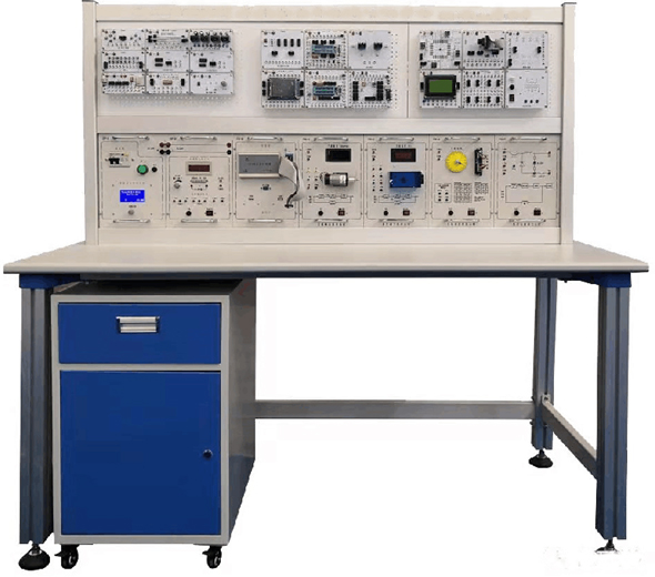 實(shí)訓(xùn)臺架應(yīng)采用工業(yè)型材結(jié)構(gòu),所有型材表面光滑,無凹槽,采用兩層結(jié)構(gòu),分別放置電源模塊、實(shí)訓(xùn)模塊及實(shí)訓(xùn)掛板等。臺架兩側(cè)提供有AC220V電源插座接口,可為外配儀器設(shè)備提供工作電源。