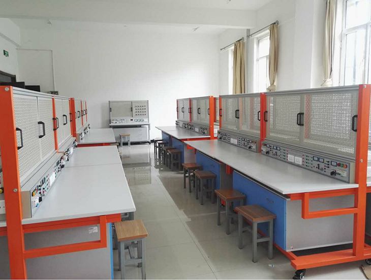 2、實(shí)訓(xùn)桌桌面采用25mm麻灰色高密度層壓板封邊特制,有效提高絕緣等級(jí);實(shí)驗(yàn)桌底部裝有至少4個(gè)導(dǎo)向輪,方便實(shí)訓(xùn)臺(tái)架移動(dòng);