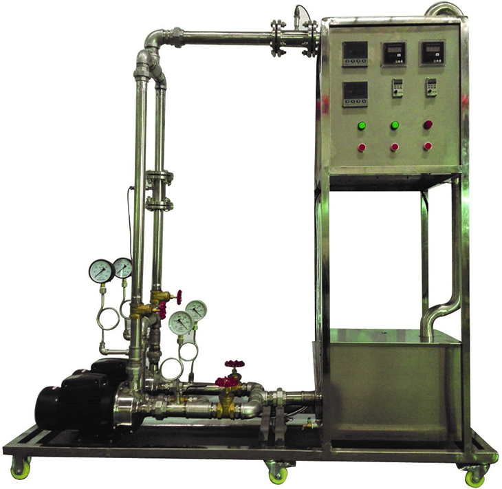 單相矢量變頻器,規(guī)格:(0-50)Hz。 指針式壓力表:表盤直徑Φ100mm 測量范圍0-0.6MPa,精度1.5級。 指針式真空表:表盤直徑Φ100mm 測量范圍-0.1-0MPa,精度1.5級。 功率變送器、智能功率數(shù)字顯示儀。 光電傳感器:數(shù)顯,測量范圍0~2999rpm,精度1rpm,轉(zhuǎn)速檢測機構(gòu)。 宇電AI702M溫度數(shù)字顯示儀。 宇電AI702M流量數(shù)字顯示儀。 DN40渦輪流量計:1~20m3/h,4-20mA遠傳輸出,流量檢測機構(gòu)。 不銹鋼離心泵:功率750W,最大流量7.2m3/h;2臺。 水箱:304不銹鋼材質(zhì),容積100L,帶貯水排空底閥,管路循環(huán)回水與泵吸入口間隔板設計。 管路:304衛(wèi)生級不銹鋼材質(zhì),采用不銹鋼快裝活接與管路連接,總出口閘閥;管道法蘭連接渦輪流量計。 電器:接觸器、開關、漏電保護空氣開關。 304不銹鋼儀表柜:測控、電器設備在實驗架上。 304不銹鋼材質(zhì)框架1800*600*1900mm(長×寬×高),帶腳輪及禁錮腳。 |