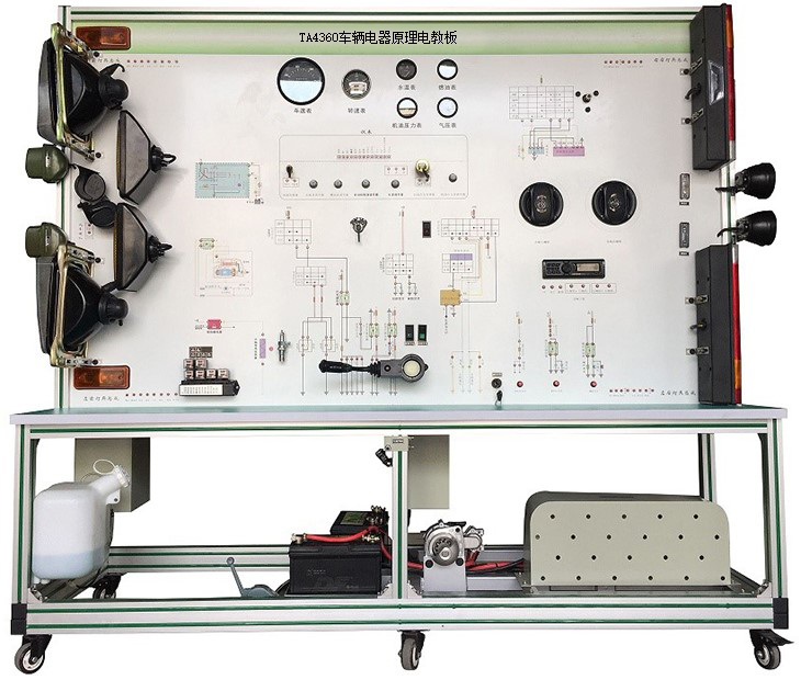 該設(shè)備采用泰安TA4360柴油機(jī)整車電器實(shí)物為基礎(chǔ),充分展示汽車儀表系統(tǒng)、燈光系統(tǒng)、雨刮系統(tǒng)、喇叭系統(tǒng)、發(fā)動機(jī)電器系統(tǒng)、起動系統(tǒng)和充電系統(tǒng)等汽車電器各系統(tǒng)的組成結(jié)構(gòu)和工作過程。