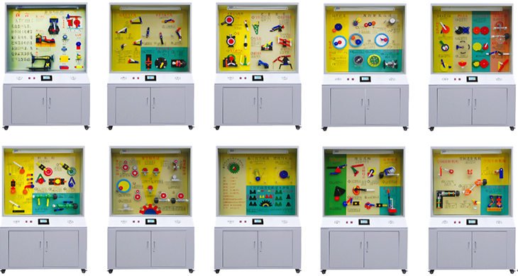 機械元件陳列柜是根據(jù)大、中專院校、技校、職業(yè)學(xué)校的機械原理教學(xué)大綱設(shè)計的電化教學(xué)設(shè)備。本陳列柜具有多功能語音播放控制系統(tǒng),語音解說同步演示,采用單獨驅(qū)動由電腦或電子設(shè)備控制運轉(zhuǎn)演示,可由遙控控制順序自動運行講解,又能根據(jù)教材、教學(xué)需要而遙控任意選擇還是單獨演示。模型材料采用進口有機板制造,板面附有必要的圖表和文字說明,演示形象逼真,運行可靠,制作工藝美觀,使用本陳列柜可提高教學(xué)效果,節(jié)約學(xué)時是一套現(xiàn)代化機械課程教學(xué)應(yīng)用實驗室設(shè)備。