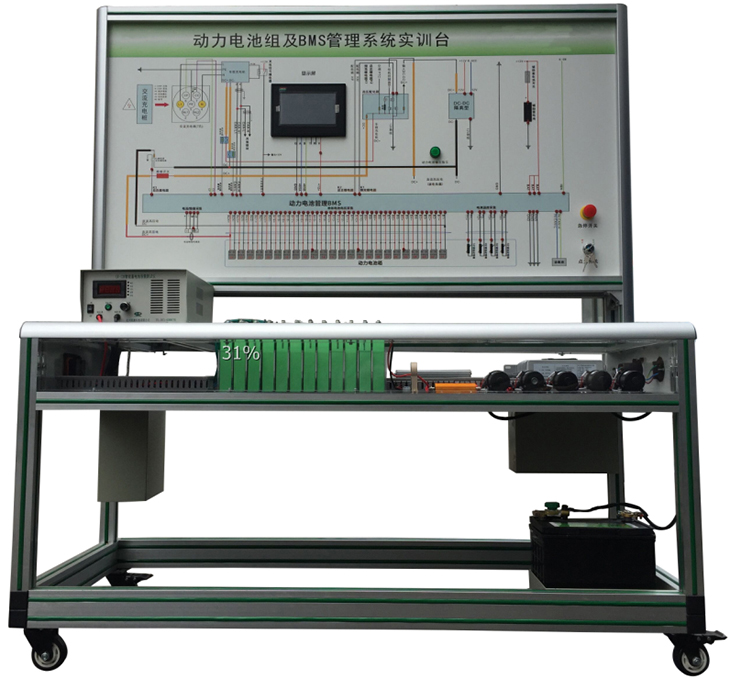 動(dòng)力電池管理系統(tǒng)實(shí)訓(xùn)臺(tái)選用新能源車(chē)輛磷酸鐵鋰 動(dòng)力電池包,單體電池(3.2V20AH,共24串),帶CAN總線的一體機(jī)BMS電池管理系統(tǒng),有被動(dòng)均衡功能;真實(shí)地呈現(xiàn)了磷酸鐵鋰動(dòng)力電池包核心零部件之間的連接控制關(guān)系、安裝位置和運(yùn)行參數(shù),以及高壓系統(tǒng)安全注意事項(xiàng),并培養(yǎng)學(xué)員對(duì)磷酸鐵鋰動(dòng)力電池包(BMS)故障分析和處理能力。適用于了解與驗(yàn)證電動(dòng)汽車(chē)的動(dòng)力電池參數(shù)進(jìn)行實(shí)時(shí)監(jiān)控、故障診斷、SOC估算、短路保護(hù)、絕緣檢測(cè)、充放電控制、均衡等功能,并通過(guò)CAN總線的方式與帶CAN通訊的車(chē)載充電機(jī)進(jìn)行信息交互,保障電動(dòng)汽車(chē)高效、可靠、安全運(yùn)行的BMS教學(xué)實(shí)訓(xùn)實(shí)驗(yàn)。