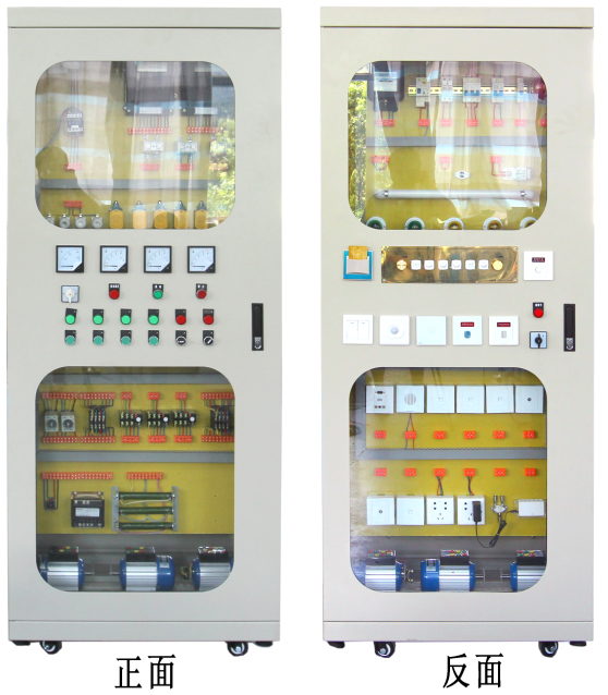 2、電氣柜體正面內安裝賓館及公寓內部單相電氣控制電路,主要包括賓館客房及公寓住宅全套單相電照明及電器插座模塊(含專用控制面板)同時還配備各種弱電信息模塊。學生通過各種不同的線路連接,既能進行一些諸如請勿打擾電路安裝等小課題的實訓,也能進行一些諸如客房全套電器安裝及故障設置和排除等綜合性課題的實訓。