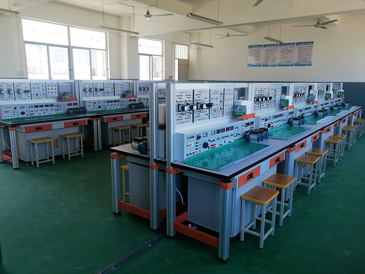 電工技術(shù)實(shí)訓(xùn)室設(shè)備能夠滿足《電氣控制與PLC》、《電機(jī)學(xué)》等專業(yè)主干課程實(shí)驗(yàn)教學(xué)工作,還為學(xué)生進(jìn)行相關(guān)的課程設(shè)計(jì)、工程實(shí)踐、畢業(yè)論文等提供實(shí)驗(yàn)平臺(tái)。