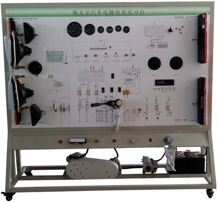 2.設(shè)備面板采用耐創(chuàng)擊、耐污染、防火、防潮的高級(jí)鋁塑板,表面經(jīng)特殊工藝噴涂底漆處理;面板打印有永不褪色的彩色電路圖;學(xué)員可直觀對(duì)照電路圖和實(shí)物,認(rèn)識(shí)和分析汽車整車電器各系統(tǒng)的工作原理。