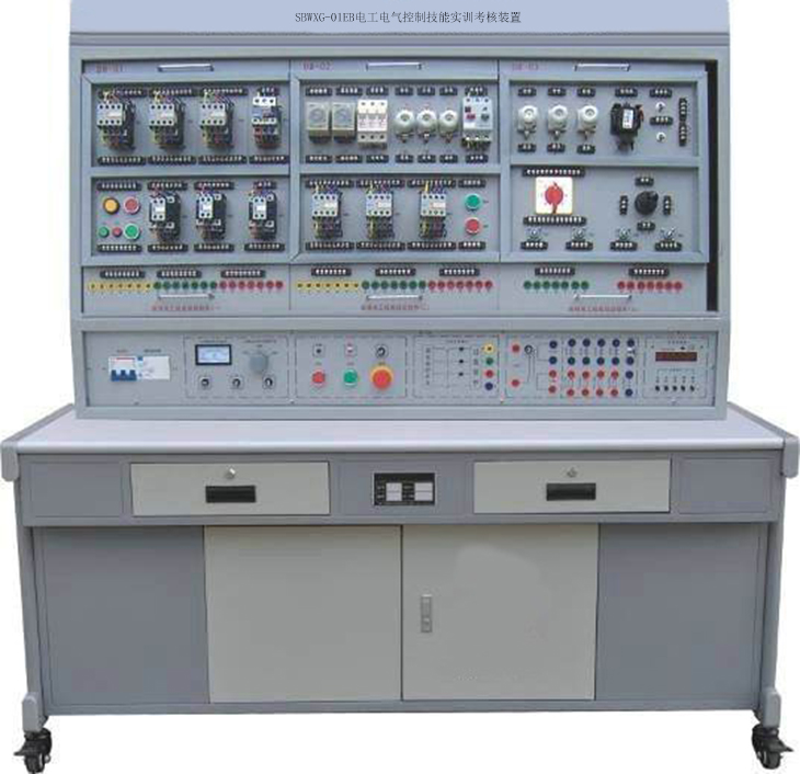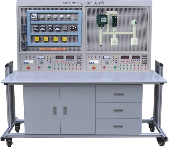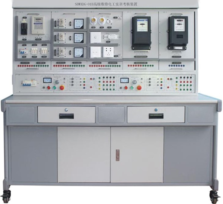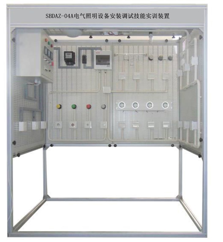 電氣安裝與維修實訓(xùn)考核裝置是根據(jù)工廠電氣安裝和室內(nèi)電氣安裝等維修 電工和電氣安裝工實訓(xùn)鑒定要求開發(fā)的一種通用實訓(xùn)平臺。 適合于各類職業(yè)院校 和技工學校維修電工、 電氣安裝工、水電工等有電氣實訓(xùn)要求的相關(guān)專業(yè)的作為 公共實訓(xùn)平臺使用。 采用鋼制網(wǎng)孔板和鋼制專用型材組接而成,安裝有自鎖式腳輪,方便移動和使用。裝 置表面噴塑,色彩穩(wěn)重氣派。電氣安裝與維修實訓(xùn)裝置設(shè)計高度以人站在一級人字梯即可方便操作的高度,既安 全又能使使用者感受到施工現(xiàn)場環(huán)境。 橫向、 叢向?qū)挾群线m, 可以模擬現(xiàn)場線路的轉(zhuǎn)向布置。