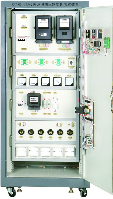 儀表及照明電路實訓考核設備是按照勞動和社會保障部頒發(fā)的"工人等級標準"和"職業(yè)技能鑒定"規(guī)范要求而設計的,它集培訓、理論、實際操作和考核鑒定為一體的多功能設備。該裝置采用實際應用的配電柜為主體,合理利用柜體的雙面空間,進行合理布局,配置可靠的元器件。它既可用于對電工儀表和照明電路的操作實訓。也可作為初、中、高級電工技能考核設備。