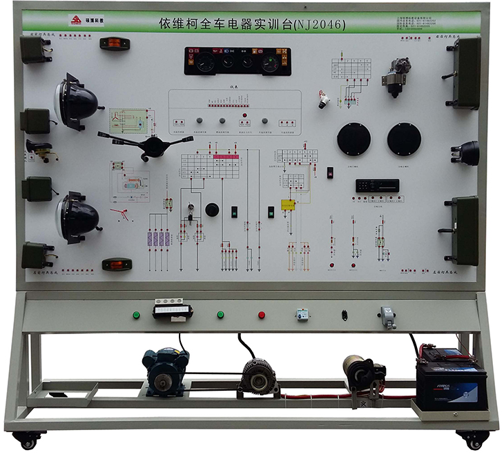 依維柯全車電器實訓設(shè)備采用 全新依維柯NJ2046柴油機整車電器實物為基礎(chǔ),充分展示汽車儀表系統(tǒng)、燈光系統(tǒng)、雨刮系統(tǒng)、喇叭系統(tǒng)、發(fā)動機電器系統(tǒng)、起動系統(tǒng)和充電系統(tǒng)等汽車電器各系統(tǒng)的組成結(jié)構(gòu)和工作過程。