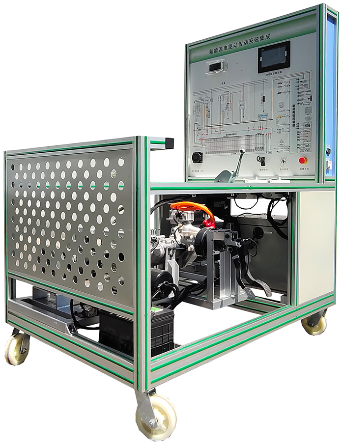 磷酸鐵鋰動力電池包及管理系統(tǒng)(帶CAN通訊,含24單體電池,放電繼電器,充電繼電器,預充繼電器,預充電阻,霍爾電流傳感器,維修開關,保險,充電接口,放電接口,低壓控制接口,動力電池采集模塊,BMS電池管理系統(tǒng)主控模塊,7寸液晶顯示屏)、驅(qū)動電機及運行部分、電子油門總成、換擋機構(gòu)總成、儀表(帶CAN通訊)、變速箱、左右傳動軸、左右前輪碟剎、磁粉制動器(左右)、手動張力控制器,助力器帶泵總成,真空泵總成、電動真空助力剎車系統(tǒng)、真空壓力傳感器、真空罐總成、國標充電插口與充電槍、車載充電機(帶CAN通訊)、DC-DC模塊、故障設置系統(tǒng)、輔助蓄電池(12V45AH)、蓄電池斷電開關、急停開關、上位機軟件及數(shù)據(jù)線(電機與電池控制單元)、一體化全鋁合金型材搭建的移動臺架(1500×1000×1700mm ,帶自鎖腳輪裝置,帶安裝檢測端子的原理面板948×898mm)、故障考核系統(tǒng)、設備操作說明書。